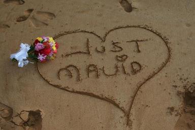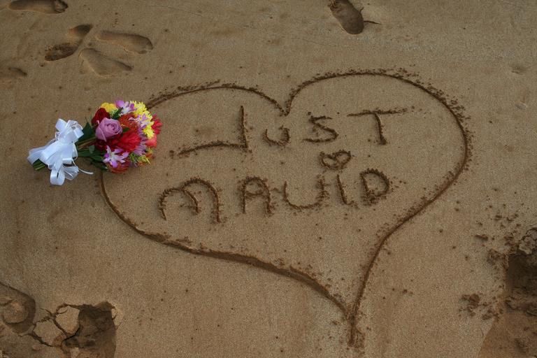 Keywords: sand drawing just married maui makena beach heart flowers wedding love