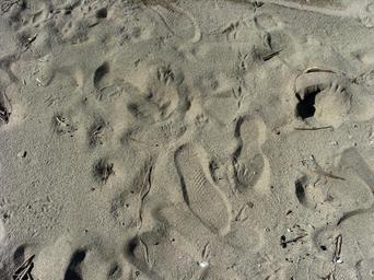 Keywords: sand footprint trace mark alone shore imprint beach gray