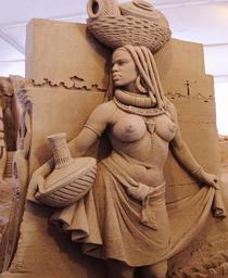 Keywords: sand sculpture artwork mursi woman young vessel-bearer sandworld africa