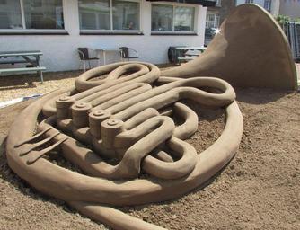 Keywords: sand sculpture french horn design symbolism art icon instrument