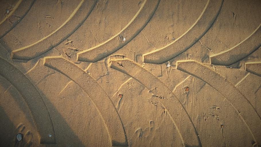Keywords: sand trace tractors mature reprint tire tracks tracks in the sand beach nature site traces sand beach sea