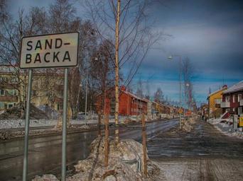 Keywords: sandbacka sweden town buildings sign sky clouds hdr winter snow trees outside road street architecture