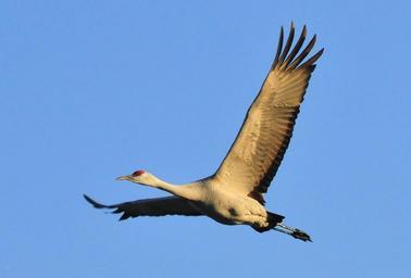 Keywords: sandhill crane flying bird wildlife nature sky outdoors flight portrait