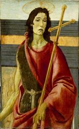 | Keywords: Sandro Botticelli - St John the Baptist - Walters 37427.jpg This panel is a fragment from the right side of a large altarpiece The complete painting must have represented the Madonna and Child enthroned with one saint on either side According to a scheme common in late 15th-century Florentine painting a marble wall enriched with cornices and polychrome incrustations formed a niche around the throne of the Virgin Mary with blue sky above This depiction of St John and another fragment which was part of the same altarpiece Madonna and Child National Museum La Valetta Malta display a close stylistic connection to Botticelli's San Barbara altarpiece in the Uffizi in Florenze The altarpiece from which the Walters' fragment came is therefore attributed by Zeri to Botticelli's workshop Zeri Italian paintings in the Walters Art Gallery 59 95-96 ca 1485 Renaissance tempera wood Painted surface cm 63 4 39 4 1 2 accession number 37 427 29519 Don Marcello Massarenti Collection Rome date and mode of acquisition unknown 1897 catalogue no 96 as Botticelli Henry Walters city Baltimore Walters Art Museum Henry Walters Acquired by Henry Walters with the Massarenti Collection 1902 place of origin Florence Italy Walters Art Museum license 2D Italian Renaissance paintings in the Walters Art Museum Saints by Botticelli Paintings in the Walters Art Museum Media contributed by the Walters Art Museum needs category review Media contributed by the Walters Art Museum needs artist update |