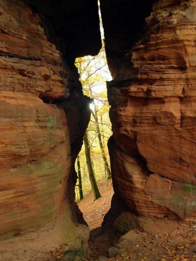 Keywords: sandstone rocks sand stone erosion by looking autumn emerge forest rock colorful yellow golden bright hiking november window palatinate