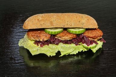 Keywords: sandwich food dining bread meatball salad red cabbage cucumber lunch hunger
