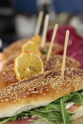 Keywords: sandwiches sandwich rocket salad ham sesame decorations oranges cheese grain aperitif taste food