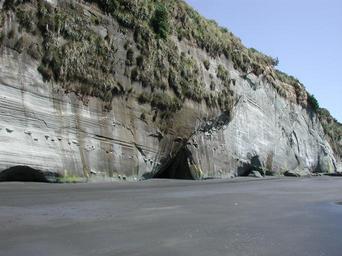 Keywords: Sandy beach below White Cliffs.jpg Sandy beach below White Cliffs Own 2011-01-02 Pseudopanax at http //en wikipedia org en wikipedia 38 53 0 S 174 31 45 E Taranaki Region Cliffs of New Zealand White cliffs Beaches of New Zealand Black sand