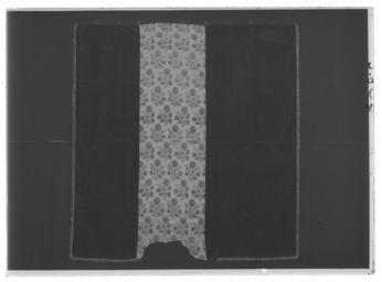 | Keywords: Sängomhänge, Torpa stenhus - Livrustkammaren - 61861-negative.tif LSH artwork sv Del av sängomhänge till stolpsäng Sängomhänget består av fyra våder De två yttre och en av mittvåderna är i benvitt siden med invävt mönster i form av stiliserade blommor i geometriska former Den andra mittvåden är av svart sidenatlas med invävda blomsterkvistar i gul cerise vit och grön silke Överst är den svarta våden lappad med en remsa i samma tyg Vit vådbredd ytterst 465 mm i mitten 225 mm Svart vådbredd 500 mm <br/>Franskant runt om långsidorna och nedre kortsidan av svart beige och vit silke bredd 18 mm <br/>Längs överkanten elva metallringar av vilka nio är av gul grövre metall med raka kanter Två är av vit metall Fästa med beigefärgat garn eller beige/svarta sidenband original caption silk Färg benvit vit d1 - dräkt - yttermaterial material siden - silk Färg svart gul cerise vit grön d1 - dräkt - yttermaterial material sidenatlas - silk Färg svart beige vit d4 - dräkt - passpoaler band kantning uppslag material silkesfrans - metal Färg gul vit d5 - dräkt - knappar och spännen material metall - yarn Färg beige d5 - dräkt - knappar och spännen material garn - silk Färg beige svart d5 - dräkt - knappar och spännen material sidenband g 560 size mm 1720 1690 LRK Himmelssängar place of origin original filename LN_B16497_019377 56192 inventory number LRK 19612 61861 CC0 Sängomhänge Torpa stenhus - Livrustkammaren - 61861 tif <gallery caption Different images of same object > File Sängomhänge Torpa stenhus - Livrustkammaren - 44739 tif File Sängomhänge Torpa stenhus - Livrustkammaren - 10496 tif File Sängomhänge Torpa stenhus - Livrustkammaren - 36181 tif File Sängomhänge Torpa stenhus - Livrustkammaren - 53300 tif File Sängomhänge Torpa stenhus - Livrustkammaren - 19058 tif File Sängomhänge Torpa stenhus - Livrustkammaren - 78982 tif File Sängomhänge Torpa stenhus - Livrustkammaren - 70423 tif File Sängomhänge Torpa stenhus - Livrustkammaren - 27620 tif </gallery> |