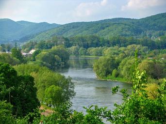 Keywords: sanok san river landscape water scenery view mountains tree