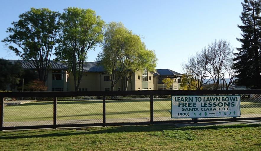 Keywords: Santa Clara Lawn Bowl area with sign.jpg en A lawn bowling area in Santa Clara California behind the library 2012-03-08 own Tomwsulcer cc-zero Uploaded with UploadWizard Santa Clara California Lawn bowling in the United States