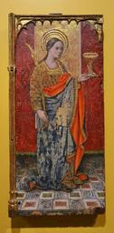| Keywords: Santa Llúcia, atribuït a Francisco Baget, Museu Diocesà d'Osca.JPG Esta obra que representa a la mártir cristiana Santa Lucía procede de la ermita de Nuestra Señora de Ciellas que es un despoblado de la provincia de Huesca Santa Llúcia atribuït a Francisco Baget Finals del segle XV procedeix de l'ermita de Nuestra Señora de Cillas Osca Museu Diocesà d'Osca Finales del siglo XV oil on panel Size cm Institution Diocesan Museum of Huesca object history exhibition history credit line accession number own cc-by-sa-3 0 PD-old-100 Paintings of Saint Lucy in Spain 15th-century paintings of Saint Lucy Paintings in the Diocesan Museum of Huesca |