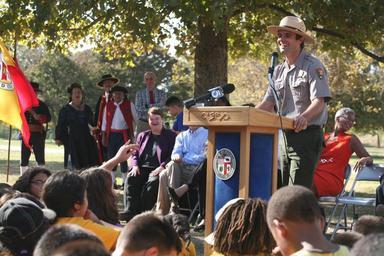 Keywords: every kid in a park everykidinapark findyourpark juan bautista de anza national historic trail juanbautistadeanzanationalhistorictrail santa monica mountains national recreation area santamonicamountainsnationalrecreationarea los angeles losangeles san fernando valley sanfernandovalley anthony c. beilenson park anthonycbeilensonpark department of interior departmentofinterior outdoor Mayor Eric Garcetti, County Supervisor Sheila Kuehl, and members of the City Council helped kick of the L.A. launch of the Every Kid in a Park program on October 15, 2015 near Santa Monica Mountains National Recreation Area. Nearly 500 local 4th-graders participated in educational activities and were rewarded with a Junior Ranger badge and a free annual pass to all federal lands. Photo credit: National Park Service. Mayor Eric Garcetti, County Supervisor Sheila Kuehl, and members of the City Council helped kick of the L.A. launch of the Every Kid in a Park program on October 15, 2015 near Santa Monica Mountains National Recreation Area. Nearly 500 local 4th-graders participated in educational activities and were rewarded with a Junior Ranger badge and a free annual pass to all federal lands. Photo credit: National Park Service.