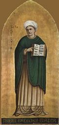 | Keywords: Santa Silvia.jpg en Saint Sylvia by an Italian painter Icona di Santa Silvia presente nel Santuario Maria SS della Vena in Vena Fraz di Piedimonte Etneo CT edificato nel 597 proprio sul terreno della Santa madre di S Gregorio Magno http //upload wikimedia org/wikipedia/scn/5/51/Santa_Silvia jpg author century 15 Saint Silvia PD-old |