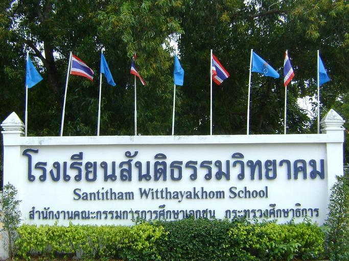 | Keywords: SantithamWitthayakhom.jpg en Santitham Witthayakhom Peace Doctrine Knowledge Baha'i Middle School th โรง๠รียนสันติธรรมวิทยาคม Yasothon City Thailand Nondan Road Pawyilee 2008-11-15/ Own file; all rights released Displaying flags of Thailand and Queen Sirikit Photographs of flags of Thailand Santitham Witthayakhom School |