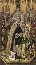 | Keywords: Santo Domingo de Silos entronizado como obispo, por Bartolomé Bermejo.jpg Artwork Q9074362 Creator Bartolomé Bermejo La obra representa a Santo Domingo de Silos entronizado como obispo y es la tabla central del retablo de Santo Domingo de Silos de la parroquia de Daroca en la provincia de Zaragoza El santo aparece vestido de obispo y sentado en un trono gótico decorado con estatuas policromadas de las siete virtudes las teologales Fe Esperanza y Caridad y las cardinales Prudencia Justicia Fortaleza y Templanza Destaca especialmente el extremo realismo del rostro de Santo Domingo y la fuerza de su mirada características propias del arte flamenco que en este caso no son verídicas sino ideales ya que fue en el siglo XI cuando el monje Domingo fundó cerca de Burgos el Monasterio de Silos donde vivió Este realismo contrasta con el abundante uso del oro que como se había especificado en el contrato no aparece embutido como es habitual en Aragón circa 1474 1477 oil on panel Size cm 130 242 Institution Museo del Prado Sala 051A accession number P01323 object history credit line https //www museodelprado es/coleccion/obra-de-arte/santo-domingo-de-silos-entronizado-como-obispo/f4cd7ad1-cc50-48fe-86f5-71dfe6672db1 https //www museodelprado es/coleccion/galeria-on-line/galeria-on-line/obra/santo-domingo-de-silos-entronizado-como-obispo/ Galería online Museo del Prado PD-old-100 Santo Domingo de Silos entronizado como obispo de Bartolomé Bermejo Museo del Prado Taken with Hasselblad H4D-50 |