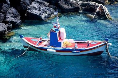 Keywords: santorini boat island sea ocean mediterranean greece seascape coast travel tourism