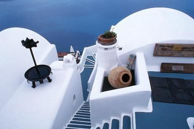Keywords: santorini island village house roof sea ocean steps seascape mediterranean architecture travel tourism greece town