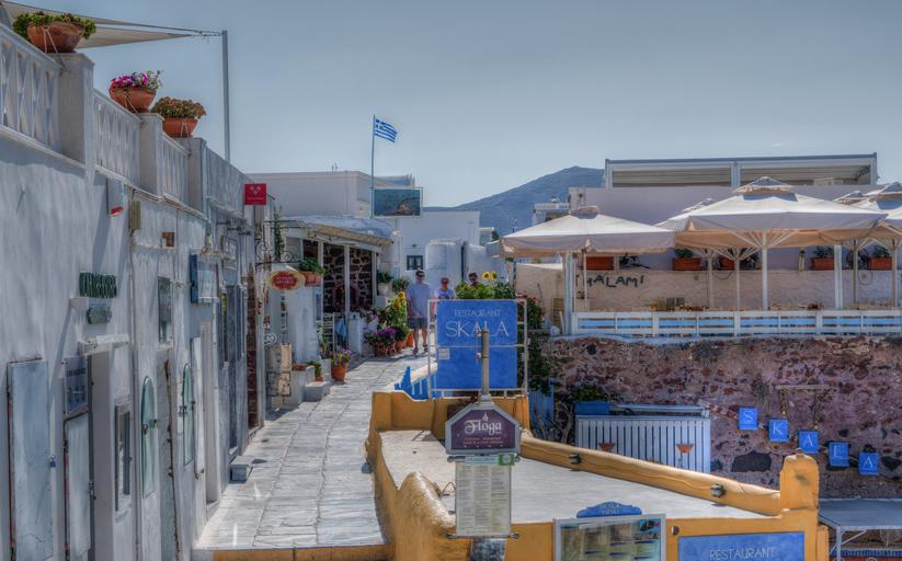 Keywords: santorini oia greece travel summer island tourism europe vacation mediterranean village white landscape architecture building blue sky famous destination alley walkway