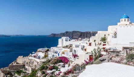 Keywords: santorini oia greece water mountains travel summer island tourism europe vacation mediterranean village white landscape architecture building blue water famous destination landmark