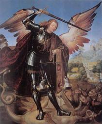 | Keywords: São Miguel Arcanjo, oficina de Garcia Fernandes (atr.).jpg 1520 Oil on panel cm 205 175 Coleção da Casa Palmela Portugal object history exhibition history credit line Fotografia de José Pessoa Pub in Cristo Fonte de Esperança catálogo de exposição do Grande Jubileu do Ano 2000 da iniciativa da Conferência Episcopal Portuguesa e organizada pela Diocese do Porto com introdução de D José da Cruz Policarpo coordenação científica de Carlos A Moreira Azevedo João Soalheiro e outros ed Diocese do Porto 2000 Portugal n º 391 p 536 accession number 49107 PD-old-100-1923 1520 Garcia Fernandes Saint Michael and the dragon 1520s paintings from Portugal 16th-century paintings of devils 16th-century paintings of Saint Michael 16th-century paintings of Satan 16th-century paintings in Portugal Angels with swords Files of Portugal uploaded by Darwinius Paintings of Christian saints in Portugal Renaissance paintings of Saint Michael 1520s religious paintings |