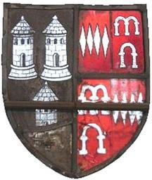 | Keywords: SapcoteImpalingDinhamBamptonChurchDevon.JPG Armorials depicted in stained glass window of Bampton Church Devon showing arms of Sapcotes http //www shapcott-family com/page28 html or Shapcott Shapcott of Shapcott Knowstone per Vivian Lt Col J L Ed The Visitation of the County of Devon Comprising the Heralds' Visitations of 1531 1564 1620 Exeter 1895 p 677 Sable three dovecotes argent impaling quarterly of four 1st 4th Gules four fusils ermine Dinham 2nd 3rd Gules three pairs of arches argent Arches for Sir Richard Arches d 1417 of Eythorpe Cranwell and Little Kimble Buckinghamshire whose daughter Joan Arches d 1497 was the wife of Sir John IV Dinham 1406-1458 and thus was Elizabeth Dinham's mother <ref>GEC IV p 377</ref> Elizabeth Dinham d 1516 2nd sister and co-heiress of the last Baron Dinham d 1501 <ref>GEC IV p 381</ref> married twice Firstly to Fulk Bourchier 10th Baron FitzWarin<ref>Mosley ed Burke's Peerage 107th Edition Delaware 2003 Vol 3 p 4290</ref> 1445 “1479 <ref>GEC IV p 381</ref> whose will directed his burial to be at Bampton if he should die in England <ref>GEC IV p 381</ref> Secondly to Sir John Sapcotes d 1501 of Elton Huntingdonshire His will dated at Tawstock the seat of the Bourchiers directed that he should be buried in Hartland Abbey founded by the Dinhams in 1168/9<ref>Chope R Pearse The Book of Hartland Torquay 1940 p 55</ref> own photo 2013 Lobsterthermidor <span class signature-talk >talk</span> 22 59 4 November 2013 UTC Dovecotes in heraldry Arches in heraldry St Michael's church Bampton Devon Dinham arms Arches arms |