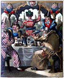 | Keywords: Saphir Carneval- und Masken-Almanach 1834 img02.jpg Abbildung aus Moritz Gottlieb Saphir Carneval- und Masken-Almanach oder Winter-Etui Jaquet München 1834 http //www mdz-nbn-resolving de/urn/resolver pl urn urn nbn de bvb 12-bsb10106658-4 1834 author PD-old-100 Carnivals in art History of Carnival 1834 engravings Meals in art |