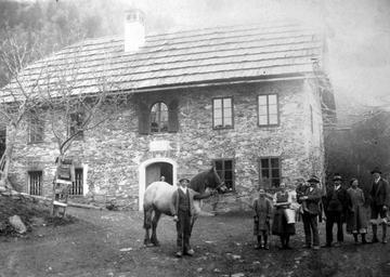 | Keywords: Sappl 60 Steggbauer 1910.jpg Steggbauer - Hof um 1910 in Sappl am Millstätter Berg Hochplateau über dem Millstätter See in Kärnten / Österreich / Europäische Union Der Bauer und das Gesinde insgesamt acht Personen stehen vor dem Haus Man zeigt stolz dass man ein Pferd hat Das Haus ist noch unverputzt rohe Steinmauer das Dach ist mit kleineren Holzbrettern gedeckt ---- Old farm in Sappl a village near lake Millstatt / Carinthia / Austria / EU The farmer and the servants eight people in front of the house They proudly show that they own a horse The house is still unplastered rough stone wall the roof is covered with small wooden planks round about 1910 taken and uploaded by JOADL private User Joadl/Ref2 46 47 47 31 N 13 37 19 11 E region AT Pd-old Files by User Joadl Farmhouses in Bezirk Spittal an der Drau Millstätter Berg Sappl Agriculture with horses Mountain farmers Plank roofs in Austria Stone walls in Carinthia |
