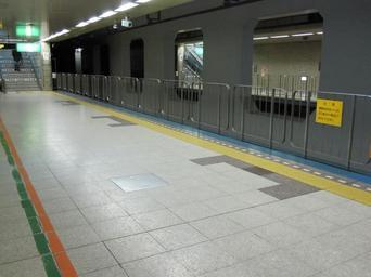 Keywords: Sapporo-Subway-Odori-Toho.JPG ja 豊線ホーム 予定していたホーム長が間引かれて転落防止柵が設けられている (大 駅) 2012-01-05 own Ninosan cc-zero Uploaded with UploadWizard Odori Station