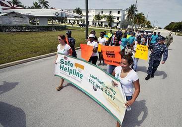 | Keywords: SAPR march 140424-N-YB753-057.jpg en Naval Air Station Key West Sexual Assault Prevention and Response Victim Advocates Machinist's Mate 1st Class Juliana Gomez left from Armenia Colombia and Aviation Boatswain's Mate Handling 2nd Class Michelle Ocon-Hernandez from San Antonio lead a SAPR march around Boca Chica Field NAS Key West is a state-of-the-art facility for air-to-air combat fighter aircraft of all military services and provides world-class pierside support to U S and foreign naval vessels U S Navy photo by Mass Communication Specialist 2nd Class Brian Morales/ Released 2014-04-24 Petty Officer 2nd Class Brian Morales https //www dvidshub net/image/1280686 140424-N-YB753-057 2014-04-28 09 03 KEY WEST FL US PD-USGov-Military-Navy Naval Air Station Key West Images from DoD uploaded by Fæ |