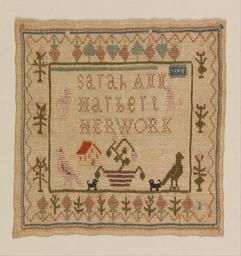 | Keywords: Sarah Ann Marbert - Sampler - Google Art Project.jpg ~ 1860 Sarah 6857111 Ann Marbert /collection/cooper-hewitt-national-design-museum/artwork/sampler-sarah-ann-marbert/6855225/ 155650 Sarah Ann Marbert /artist/sarah-ann-marbert/29129189/ 29129189 /collection/cooper-hewitt-national-design-museum/ Cooper-Hewitt National Design Museum 3644669 http //www cooperhewitt org/ /collection/cooper-hewitt-national-design-museum/artwork/sampler-sarah-ann-marbert/6855225/ 1855 ca 1860 Medium wool embroidery on linen foundationTechnique embroidered in counted cross and long-armed cross stitches on plain weave foundation Ex coll Fraser-Martin 6855225 False 1865 1976-100-39 http //collection cooperhewitt org/view/objects/asitem/id/155650 Gift of Anonymous Donor from the Fraser/Martin Collection Sampler 1850 1870 ca 1860 False 0 939453125 Object sampler-sarah-ann-marbert Sampler s H x W 22 2 x 21 6 cm 8 3/4 x 8 1/2 in Sarah Ann Marbert Her Work Medium wool embroidery on linen foundationTechnique embroidered in counted cross and long-armed cross stitches on plain weave foundation Ex coll Fraser-Martin special url_id OgGbV3IbrJPNnw PD-old-70-1923 Google Art Project works by Sarah Ann Marbert Textiles in the Cooper “Hewitt Smithsonian Design Museum 1860s samplers Google Art Project works in Cooper-Hewitt Smithsonian Design Museum 1860 works |