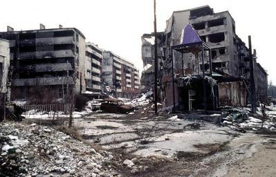 | Keywords: Sarajevo Grbavica.JPG View of Grbavica a neighbourhood of Sarajevo approximately 4 months after the signing of the Dayton Peace Accord that officially ended the war in Bosnia This particular scene shows the part of the neighbourhood located by the left bank of Miljacka river near Vrbanja bridge at the point where Zagrebačka Street and Beogradska Street later renamed Emerika Bluma Street meet Throughout the war 1992-1995 Grbavica was held by the forces of Bosnian Serbs In relation to the part of Grbavica shown in the photo Bosnian Muslim Bosniak lines were right across on the Miljacka river's right bank Due to its location in the crossfire between two sides this part of Grbavica was exposed to constant fire and as a result suffered heavy structural damage It was basically uninhabitable throughout the war - most of the apartments in the buildings seen in the photo were empty during the war as their occupants fled early on fearing for their safety These ruins of the apartments and houses were among the last group to be turned over by the Bosnian Serbs to the Bosniaks a k a Bosnian Muslims as required by the Dayton Peace Accord which produced a lasting cease fire and permanent internal borders between two entities - Republika Srpska Serb entity and Federation of Bosnia-Herzegovina Muslim-Croat entity The white building whose small part corner can be seen along the photo's left edge housed the state-owned Unioninvest company before the war In the years after the war ended the partially devastated building was rebuilt and to this day houses the Office of the High Representative OHR an ad hoc international institution responsible for overseeing implementation of the Dayton Peace Accord in essence OHR is Bosnia's highest decision-making institutional body with broad powers http //www dodmedia osd mil/DVIC_View/Still_Details cfm SDAN DFST9805440 JPGPath /Assets/Still/1998/Air_Force/DF-ST-98-05440 JPG www dodmedia osd mil 1996-03-09 LT STACEY WYZKOWSKI Public Domain PD-USGov-Military 43 51 10 15 N 18 24 20 07 E region BA_heading SW PD-USGov Siege of Sarajevo Grbavica Sarajevo Ruins of the War in Bosnia and Herzegovina in Sarajevo Streets in Sarajevo 1996 in Sarajevo 1996 photographs |