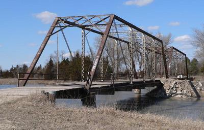 | Keywords: Sargent bridge from SE 1.JPG 92000740 Sargent Bridge across the Middle Loup River south of Sargent Nebraska ; seen from the southeast The Pratt through truss bridge was built in 1908 and is listed in the National Register of Historic Places It is no longer used for vehicle traffic a new bridge located downstream from the old one now carries U S Highway 183 across the river The bridge is at the head of a small island in midstream; in the picture the near truss crosses the channel south of the island while the far truss crosses the channel to the north own Ammodramus 2010-03-25 Pictures by Ammodramus Taken with Panasonic Lumix DMC-FZ20 Sargent Bridge |