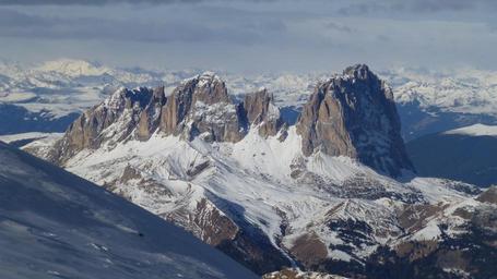 Keywords: sassolungo dolomites mountains italy snow blue sky panorama