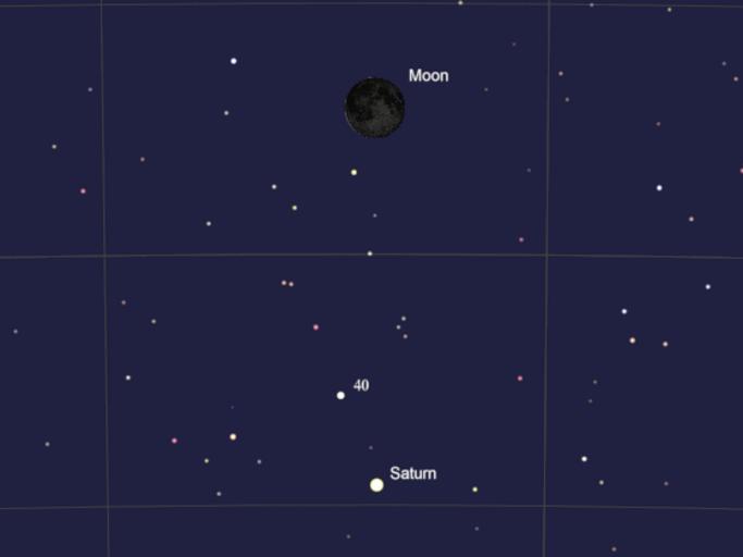 Keywords: The waning crescent Moon passes north of Saturn at 21:10 UT, 27th December 2016. news