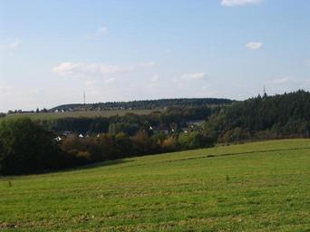 Keywords: Sauerbrunnen-schwall.jpg Sauerbrunnen und Schwall von Leiningen aus gesehen Own 2007-09-23 Markus Braun Leiningen Hunsrück Sauerbrunnen Leiningen