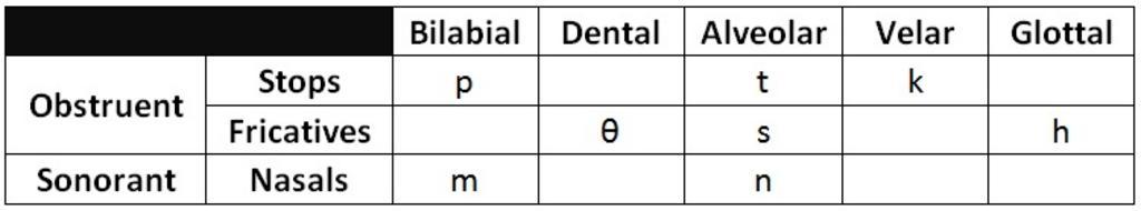 Keywords: Sauk Consonants.jpg en A chart of the consonants of the Sauk language 2011-10-26 own My-soma-holiday cc-zero Uploaded with UploadWizard Sac Phonology