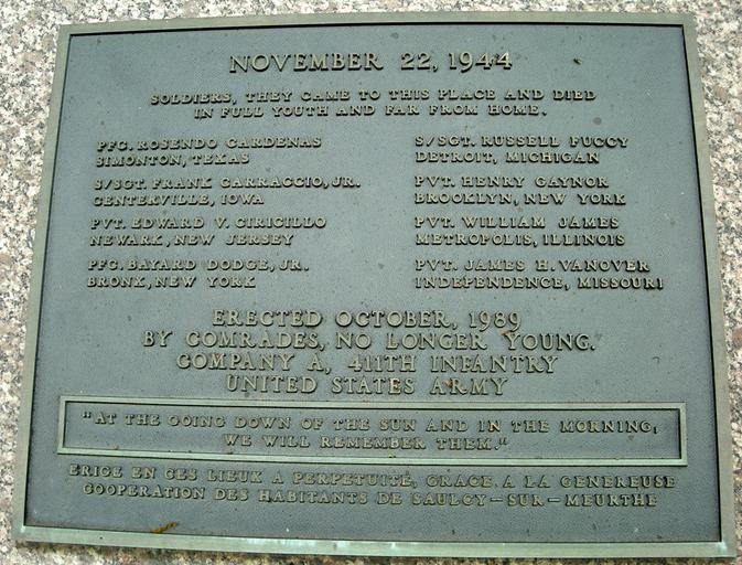 Keywords: Saulcy-Nécropole7.jpg Nécropole nationale de Saulcy-sur-Meurthe Vosges Own 2008-05-20 Ji-Elle Nécropole nationale de Saulcy-sur-Meurthe World War II memorials in France Soldiers of the United States Plaques in Vosges