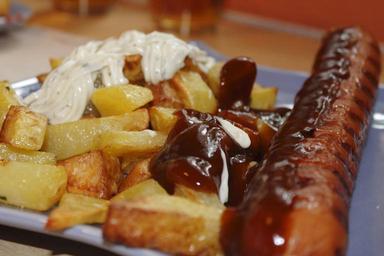 Keywords: sausage french lunch food potatoes eat cook plate
