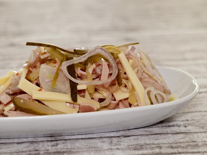 Keywords: sausage salad cheese meal eat food pickles substantial swiss sausage cut oil delicious frisch discs ham vespers cook vinegar onion meat paprika meat products real