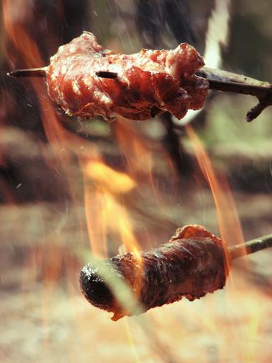 Keywords: sausages sausage an outbreak of fire burning eating rest popas