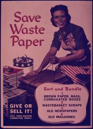 | Keywords: SAVE WASTE PAPER. SORT AND BUNDLE. GIVE IT OR SELL IT^ - NARA - 515345.jpg Scope and content General notes 515345 Local identifier 44-PA-1677 Office for Emergency Management Office of War Information Domestic Operations Branch Bureau of Special Services 03/09/1943 - 09/15/1945 Still Picture Records Section Special Media Archives Services Division NWCS-S National Archives at College Park 8601 Adelphi Road College Park MD 20740-6001 1941 - 1945 Record group Record Group 44 Records of the Office of Government Reports 1932 - 1947 Record group ARC 373 World War II Posters compiled 1942 - 1945 Series ARC 513498 File unit File unit ARC Variant control numbers NAIL Control Number NWDNS-44-PA-1677 Other versions <gallery> File SAVE_WASTE_PAPER _SORT_AND_BUNDLE _GIVE_IT_OR_SELL_IT _-_NARA_-_515345 tif tif File SAVE_WASTE_PAPER _SORT_AND_BUNDLE _GIVE_IT_OR_SELL_IT _-_NARA_-_515345 jpg jpg </gallery> NARA-cooperation PD-USGov World War II posters from the United States |