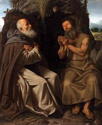 | Keywords: Savoldo, santi antonio abate e paolo.jpg Artwork creator Giovanni Gerolamo Savoldo St Anthony Abbot and St Paul ca 1515 Oil on canvas size cm 165 137 Institution Accademia object history credit line accession number WGA link 20899 http //www wga hu/art/s/savoldo/abbot jpg http //www wga hu/html/s/savoldo/abbot html PD-old-100 painting religious Italian 1501-1550 Saint Anthony and Saint Paul Italian paintings in the Accademia Galleries Venice Giovanni Gerolamo Savoldo WGA form painting WGA type religious WGA School Italian WGA time period 1501-1550 16th-century paintings of Christian saints |