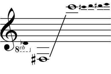 Keywords: Saxotromba extended range.svg Saxotromba including maximum extensions Own Erigena 2008-12-03 Brass wind instrument ranges