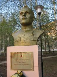 Keywords: Sazonov Afanasii Illarionovish bust.jpg ru Бюст Афанасия Илла ионовича Сазонова на Аллее Славы отк ытой 09 05 2010 года в го оде Че нушка own AndreyIGOSHEV 2010-05-09 Chernushka Busts in Russia