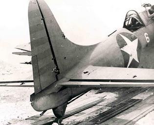 | Keywords: SBD-2 tail VMSB-241 Midway June 1942.jpg Rolling off the Douglas Aircraft Company assembly line in El Segundo California in December 1940 SBD-2 Dauntless BuNo 2106 was delivered to bombing squadron VB-2 at Naval Air Station NAS San Diego California on the last day of 1940 On 10 March 1942 flown by Lt jg Mark T Whittier with AR2C Forest G Stanley as his gunner the aircraft joined 103 other planes from USS Lexington CV-2 and USS Yorktown CV-5 in a raid against Japanese shipping at Lae and Salamaua in New Guinea It was then transferred to Marine scout bombing squadron VMSB-241 on Midway Atoll arriving there with eighteen other SBD-2s on 26 May 1942 on board the aircraft transport USS Kitty Hawk APV-1 On the morning of 4 June 1942 with 1st Lt Daniel Iverson as pilot and PF1c Wallace Reid as rear gunner the aircraft was one of sixteen SBD-2s of VMSB-241 launched to attack Japanese aircraft carriers to the west of Midway After unsuccessfully attacking the carrier Hiryu enemy fire holed the plane 219 times It was one of only eight SBD-2s of VMSB-241 to return from the attack against the Japanese fleet Returned to the US it was repaired and eventually assigned to the Carrier Qualification Training Unit CQTU at NAS Glenview Illinois On the morning of 11 June 1943 Marine 2nd Lt Donald A Douglas Jr ditched the aircraft in the waters of Lake Michigan during an errant approach to the training carrier USS Sable IX-81 Recovered in 1994 the aircraft underwent extensive restoration at the U S National Museum of Naval Aviation at Pensacola Florida USA before being placed on public display in 2001 Elements of its original paint scheme when delivered to the fleet are still visible on its wings and tail surfaces shortened U S Navy National Museum of Naval Aviation photo No 26995 http //collections naval aviation museum/emuwebdoncoms/objects/common/webmedia php irn 26995 1942-06-04 U S Navy PD-USGov-Military-Navy Douglas SBD Dauntless Battle of Midway US forces on Midway Aircraft at National Museum of Naval Aviation Naval Air Station Midway |