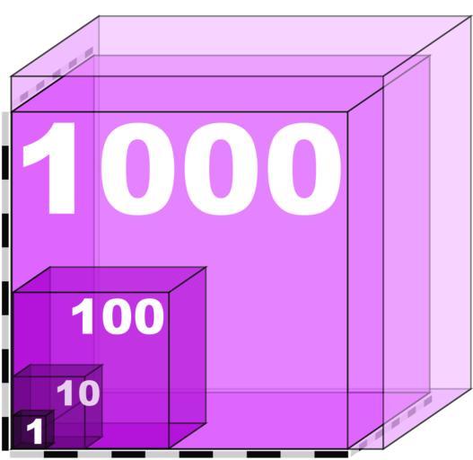 | Keywords: Scale one to thousand volume.svg Comparison of one unit to one thousand units Intended to be used as an imagemap for navigating three dimensional orders of magnitude such as volume The boxes are intended to be clicked on as follows the small very dark purple bottom-left 1 links to the next smaller order of magnitude the dark-purple 10 box links to the range 1 to 10 the mid-purple 100 box links to the range 10 to 100 the light purple 1000 box links to the range 100 to 1000 units and the surrounding paler purple links to larger than 1000 units Created by me 84user using Inkscape 0 46 2008-11-06 84user Public domain thumb left same image without labels <imagemap> Image Scale one to thousand volume svg Click on the small very dark purple bottom-left box for quantities smaller than 1 the dark purple box for 1 to 10 units the mid purple box for 10 to 100 units the light purple box for 100 to 1000 units and the paler purple surround for over 1000 units poly 0 530 0 470 62 470 62 530 1 E-6 m³ poly 0 530 0 420 119 420 119 530 1 E-5 m³ poly 0 530 0 306 236 306 236 530 1 E-4 m³ poly 0 530 0 63 497 63 497 530 1 E-3 m³ poly 0 530 0 0 530 0 530 530 1 E-2 m³ - Click this pale purple surround for volumes over 1 E-2 m³ or hover over the other boxes and select the desired range desc top-left </imagemap> Clickable images Order of magnitude Comparison diagrams |
