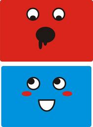 Keywords: scared happy look smile drool mouth joy below top red blue face rectangle