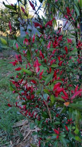 Keywords: Graptophyllum excelsum - Hardy, could be used as hedge. Bold bird attracting, Sept-Nov scarlet flowers. Tolerates light frost and drought. Perfect! gardening fuscia