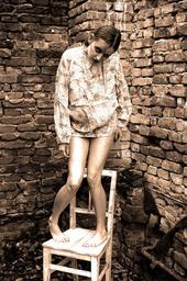 Keywords: scary lady people woman female fool freak nutcase lunatic weird strange thoughts jersey status wall brick gray horror assistance psychiatric checkers symbol